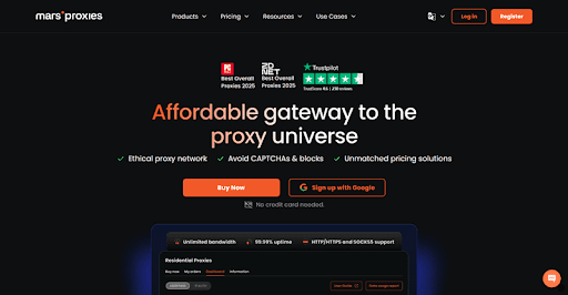 Now comes the last item on the list of best cheap residential proxies. MarsProxies positions itself as a premium provider, and you can feel it in their service quality. Their network is reliable and their connections are secure. I was impressed with the uptime during my tests. They are a solid choice if reliability is your top priority.
