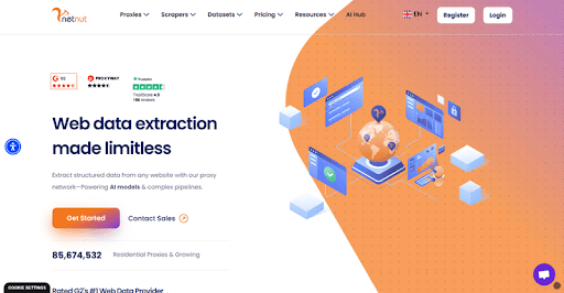 NetNut is another great competitor in the cheap proxy battlefield. At $3.53 per GB, their pricing is competitive with other best cheap residential proxies. With website unblockers and scraper APIs available, it is definitely a powerhouse, especially for heavy-duty, large-scale data scraping. They use unique network technology that can offer great stability for specific use cases. Therefore, their service is professional and geared towards businesses.